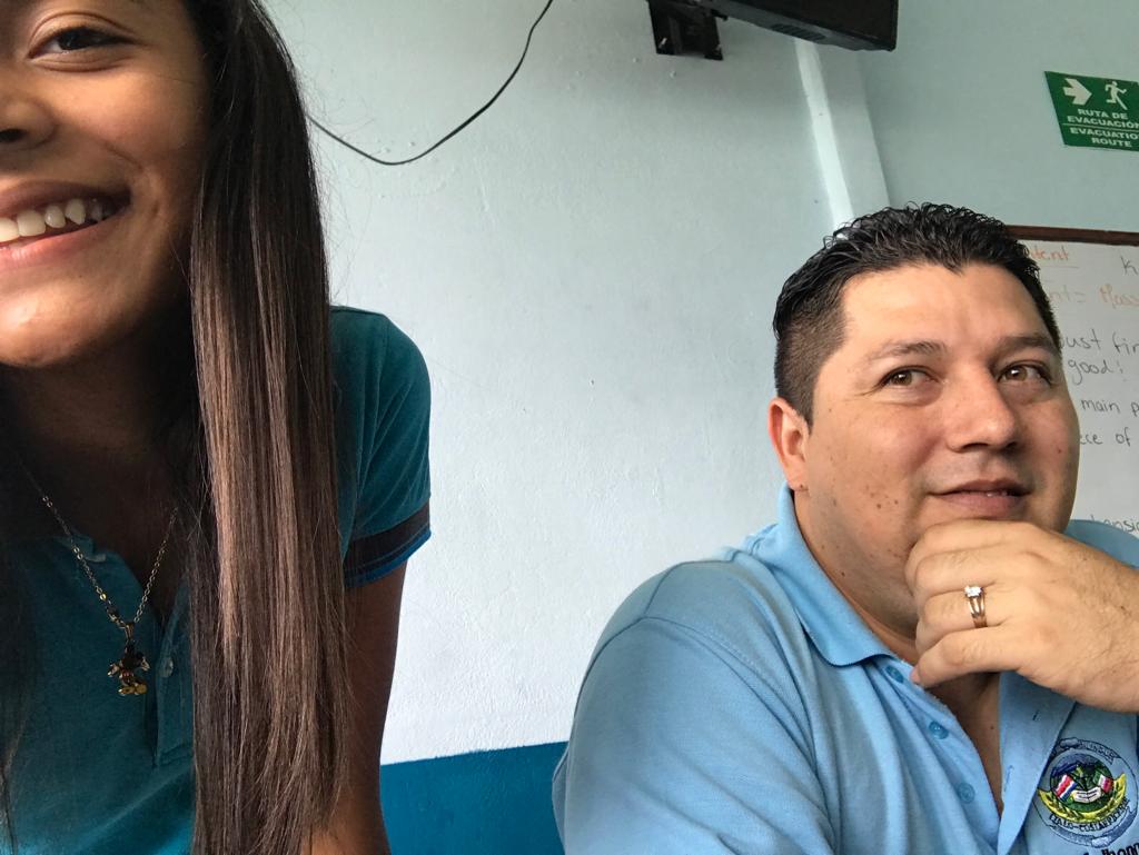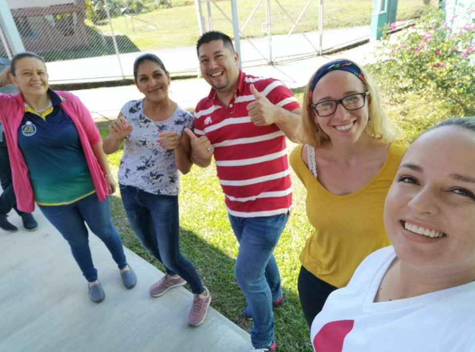 We met in a training in San Jose in the TRYP hotel (Project Partner Workshop). We went there without knowing each other. When we got there, they gave us a piece of paper describing a person (my paper said “love gardening/plants, left-handed, and has blue eyes”) that we had to find. That was the first day that we met. At that time I was scared because I had never been in contact with a native English speaker – I didn’t speak very much in English at that point, so that was something that really changed my life because I lost my fear of speaking English with someone else in that moment, and have continued to learn new things each day. And I got a new friend; someone who has helped support me in my profession and with my students.