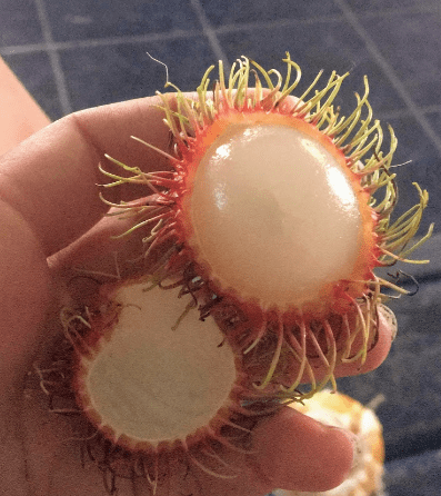 How to eat it: I like to cut them open with a knife, but sometime the the dark purple rind is delicate enough to puncture with your fingers. The larger white pods often have a seed in them that you can spit out, but the smaller ones are usually so soft and sweet that they melt in your mouth.